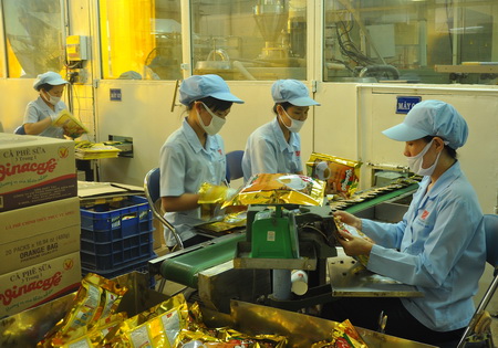 | Coffee being packaged by workers at Vinacafe Bien Hoa - photo Van Khanh |