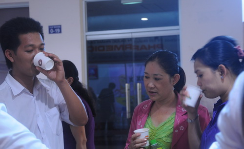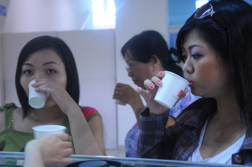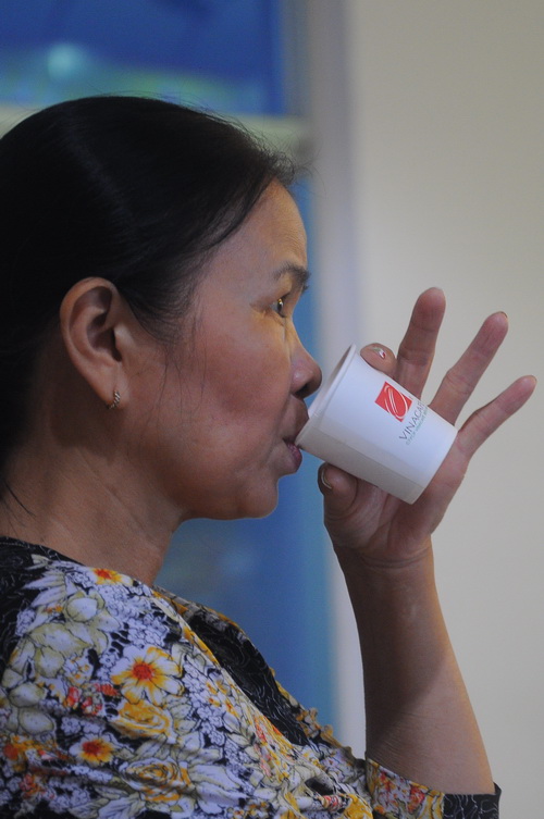 Khách hàng dùng thử sản phẩm của Vinacafé. Từ người đứng tuổi...