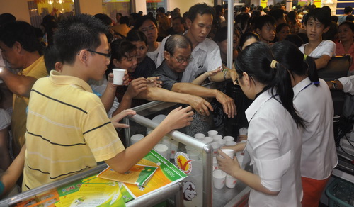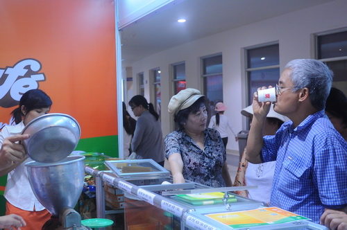 Quầy dùng thử cà phê sữa 3 in 1 và Ngũ cốc dinh dưỡng luôn chật kín