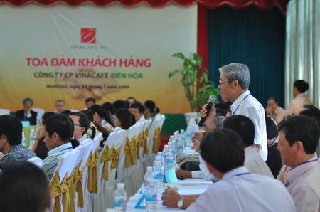 Nằm trong chương trình Hội nghị Khách hàng 2009 do Vinacafé BH tổ chức, buổi tọa đàm giữa đại lý/nhà phân phối và Công ty CP Vinacafé Biên Hòa đã diễn ra tại hội trường Khu du lịch Long Thuận (Ninh Thuận) vào ngày 23/7/2009. Qua những ý kiến góp ý và phản hồi từ khách hàng, Công ty nắm bắt rõ nhu cầu người tiêu dùng một cách cụ thể và sát thực, tất cả hướng đến sự phát triển chung và không nằm ngoài mục tiêu: vì sự thịnh vượng của nhà phân phối/đại lý, vì sự tin yêu của người tiêu dùng.