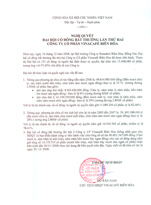 Nghị quyết đại hội cổ đông bất thường lần thứ 2