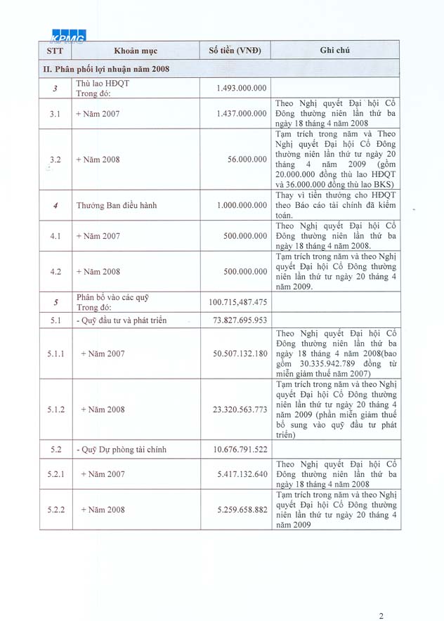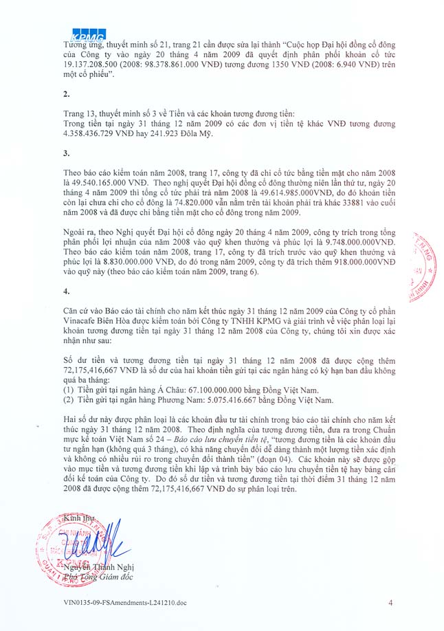 Hội đồng Quản trị Vinacafé BH trân trọng thông báo về việc đính chính số liệu thuyết minh Báo cáo tài chính VCF của KPMG.
