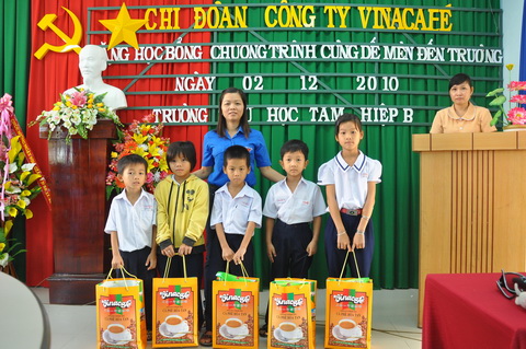 Ngày 02 tháng 12 năm 2010, Chi đoàn Công ty cổ phần Vinacafé Biên Hòa đã trao quà khuyến học chương trình “Cùng Dế Mèn đến trường” cho các em học sinh Trường tiểu học Tam Hiệp B.