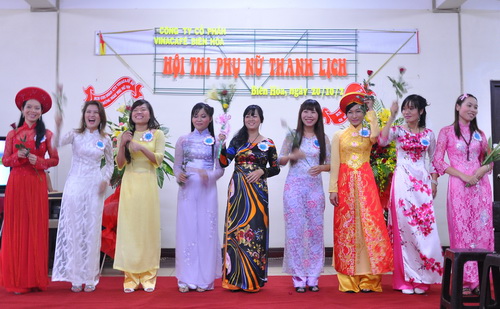 Chiêm ngưỡng vẻ đẹp thướt tha, dịu dàng của mười bảy thí sinh tiêu biểu nhất, đại diện chị em các phòng ban phân xưởng Vinacafé Biên Hòa, trong trang phục áo dài truyền thống tại Hội thi Phụ nữ thanh lịch Vinacafé 2011.