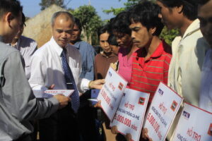 Hỗ trợ tiền mua phân bón, thuốc bảo vệ thực vật cho 30 hộ nghèo tại buôn Mâp, Ea Pốk, Cư M’Gar, số tiền: 5 triệu đồng/hộ và quà tặng bằng sản phẩm cho khoảng 300 hộ dân địa phương mỗi phần quà trị giá 100.000 đồng.