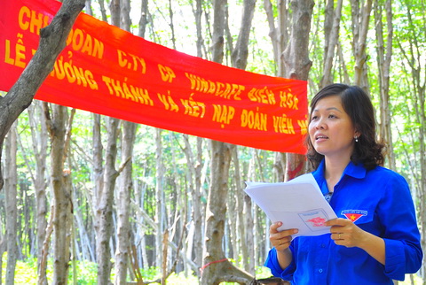 Đồng chí Nguyễn Ngọc Kim Ngân thay mặt các đoàn viên mới đọc lời hứa