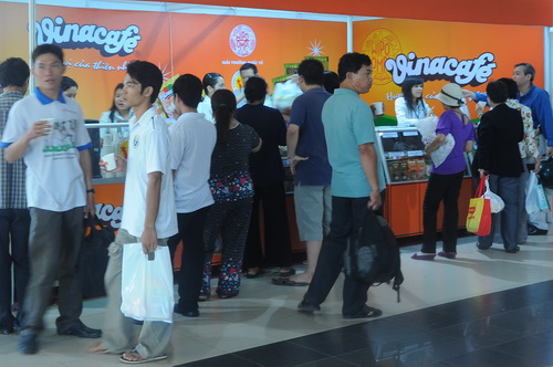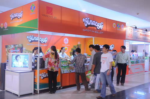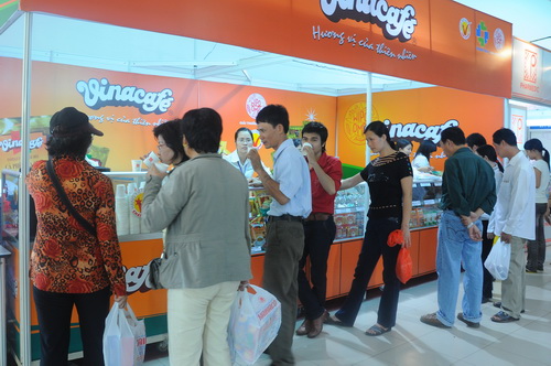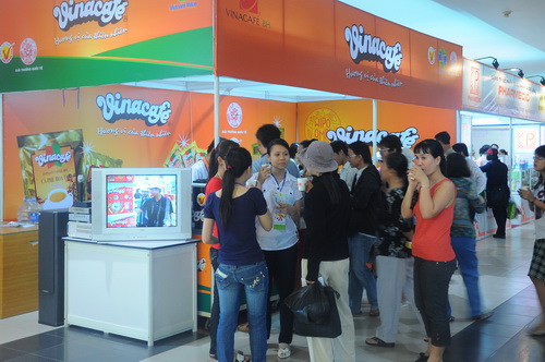 Hai gian hàng của Vinacafé BH được rất đông khách hàng chú ý, ghé thăm tuy đây mới chỉ là ngày đầu tiên (28/4) của đợt hội chợ Hàng Việt Nam chất lượng cao diễn ra trong 6 ngày tại Nhà Thi đấu Phú Thọ, Q. 11, Tp. Hồ Chí Minh.