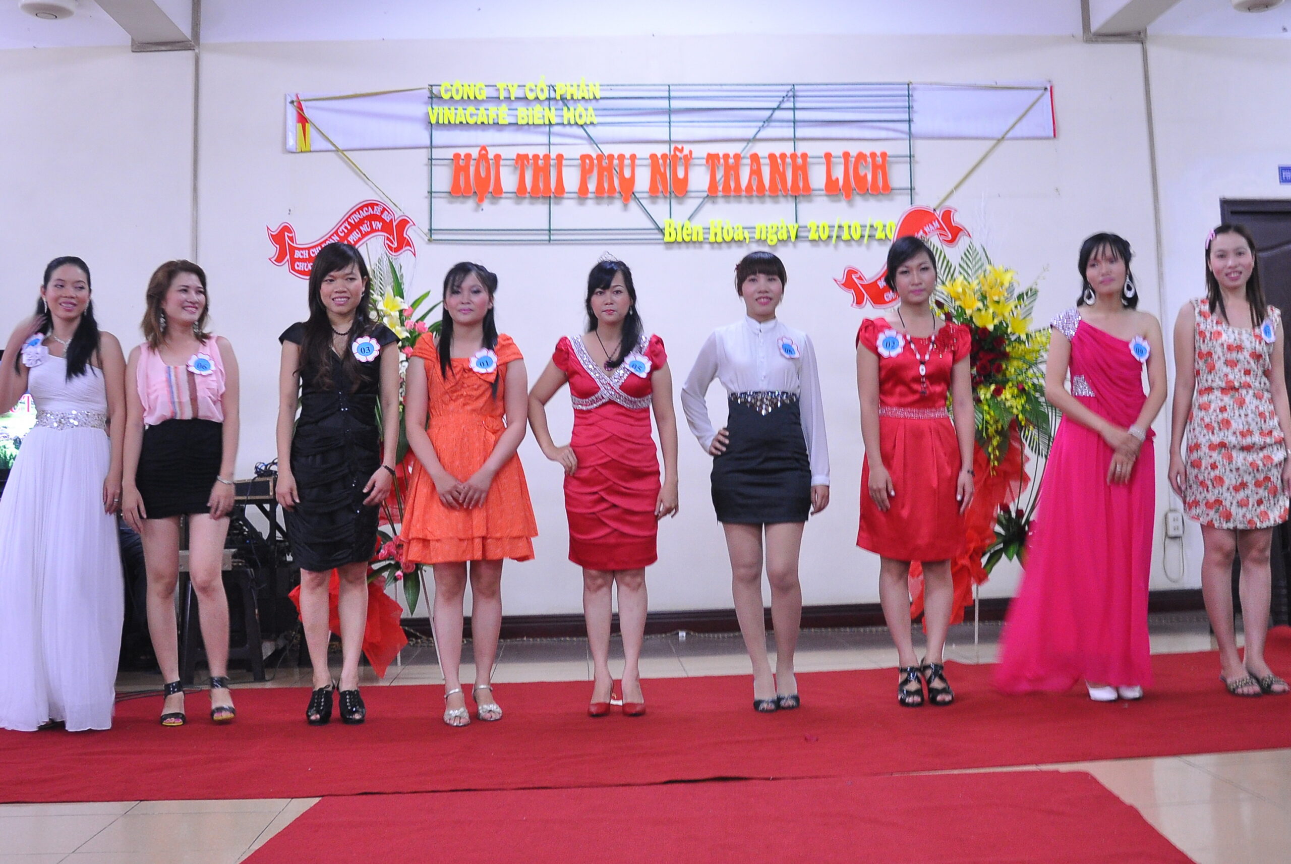 Trong phần thi biểu diễn Trang phục dự tiệc tại Hội thi Phụ nữ thanh lịch Vinacafé 2011, mười bảy thí sinh tiêu biểu nhất, đại diện chị em các phòng ban phân xưởng Vinacafé Biên Hòa, đã thể hiện được nét lịch thiệp sang trọng.