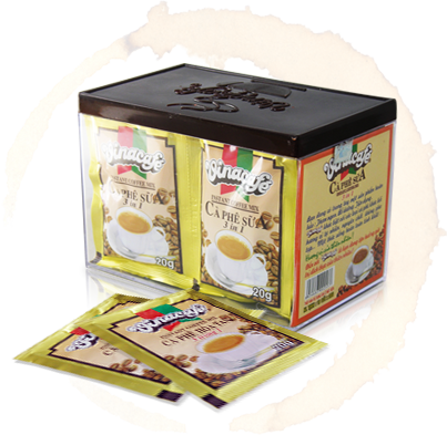 A box of 18 sachets with Gold packaging of Vinacafé 3 in 1 is a elegant formula of Vinacafé soluble coffee, nondairy creamer and refined sugar. It is the best choice of those who prefer to the traditional Vietnam style milk-coffee taste . Your cup of coffee will be stronger with 20 gram in each sachet.