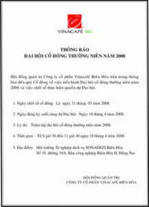 Thông báo đại hội cổ đông thường niên năm 2008