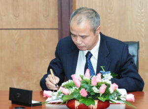 Ô. Phạm Quang Vũ - Tổng giám đốc Vinacafé BH ghi lưu bút và ký vào Sổ lưu niệm của HOSE